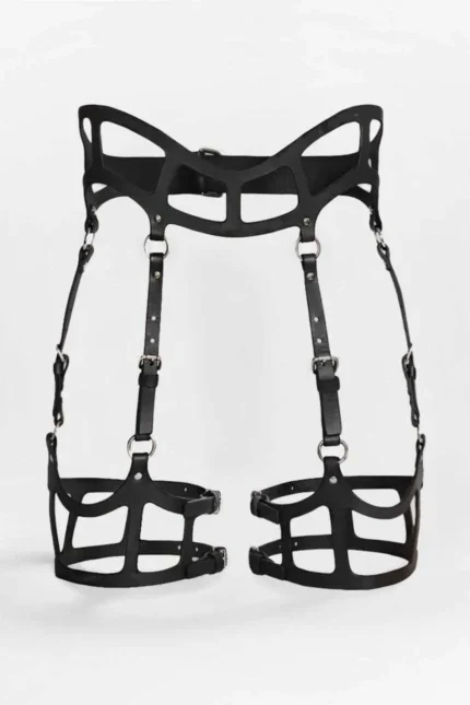 This striking double-strap design is engineered for maximum visual impact, creating a bold, graphic line down your thigh. Itβs a simple yet effective way to introduce the aesthetic of a full Women’s Harness without committing to an entire upper body piece. The sleek material and polished hardware ensure a premium, rebellious feel that is always in style.