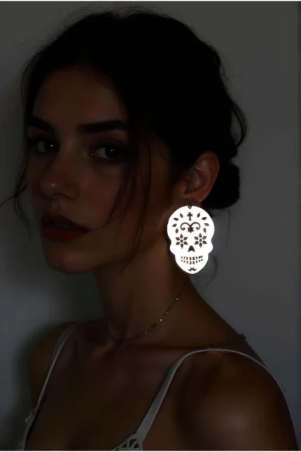 12,9 $White Reflective Skull Gothic Earrings, Stylish Laser Cut Earrings – APBJ029