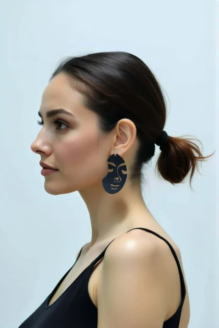 12,9 $Black Abstract Woman’s Face Earrings, Stylish Laser Cut Leather Earrings – APBJ005