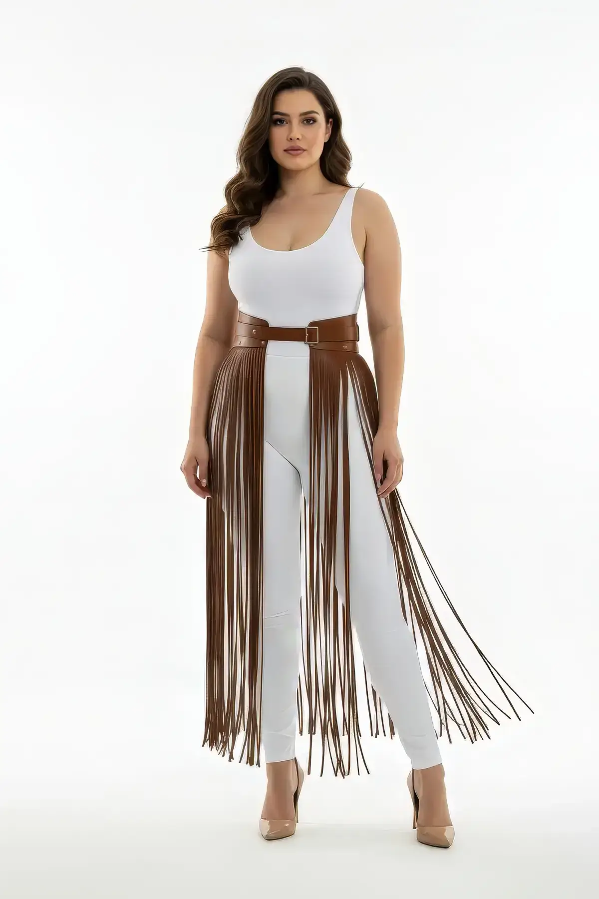 Plus Size Brown Skirt with Long Tassel Leather Accessory – SH1003
