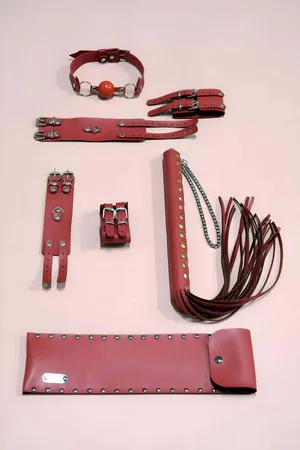 Whip Handcuffs Set, Set of 5, Hand - Foot Clamps, Mask, Mouth Ball - APFT1307