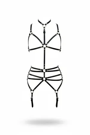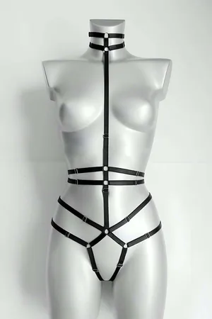 Black Body Harness Full Body Metal Ring Detailed - APFT360