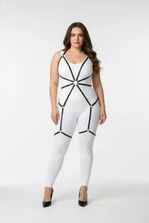 Black Body Harness Faux Leather with Adjustable Leg Detail - APFT234