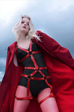 Body-hugging Red Leather Harness Fancy Wear - APFT750
