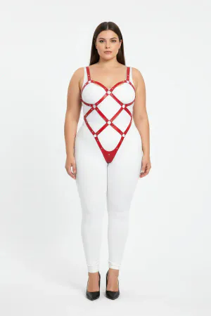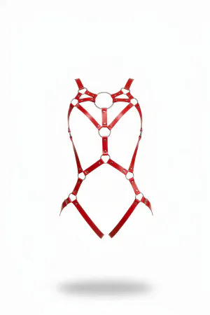 Red Body Harness with Full Body Ring Detail and Geometric Cut - APFT568