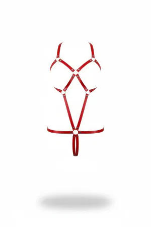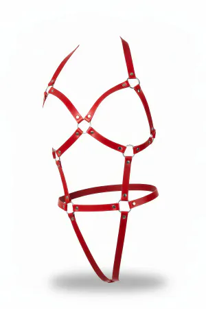 Red Body Harness Leather with Metal Ring Detail - APFT759