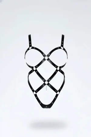 Leather Body Harness, Leather Dancer Costume, Pole Dance Costume - APFT502