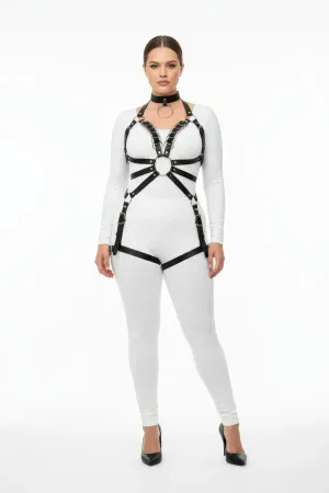 Black Body Harness Faux Leather Adjustable with Metal Ring Detail - APFT453