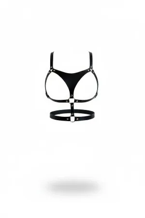 Black Chest Harness with Leather O-Ring Detail - APFT1388