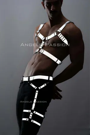Reflective (Glow in the Dark) Chest Harness, Clubwear, Stylish Men's Body Accessory - APFTM40