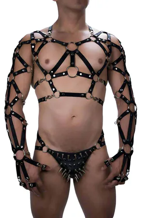 Men's Harness Set with Nail Detail and Mask, Men's Clubwear, Men's Chest Harness - APFTM204