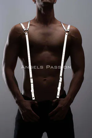 Reflective (Glow in the Dark) Men's Chest Harness, Reflective Trouser Suspenders, Clubwear - APFTM23