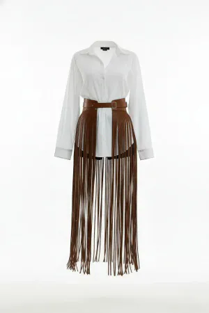 Tan Skirt Long Tasseled Faux Leather Skirt - APFT1003