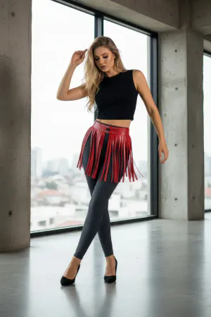 Red Skirt Leather Buckle Tasseled Short Skirt - APFT1400