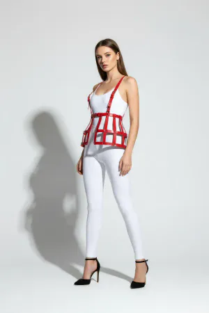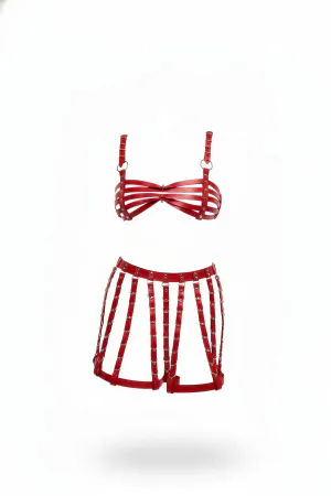 Plus Size Red Leather Skirt Cage Design Fancy Harness - APFT694
