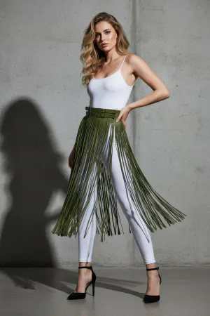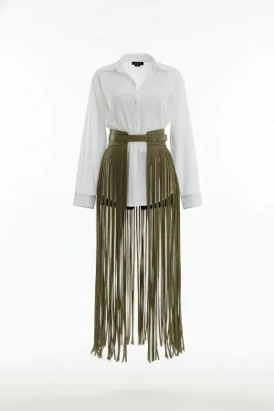 Khaki Skirt Long Tasseled Faux Leather Skirt - APFT1090