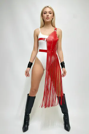 Red Skirt Leather Flounce Shoulder Peplum - APFT1001