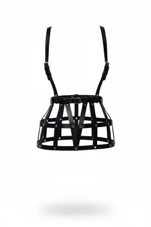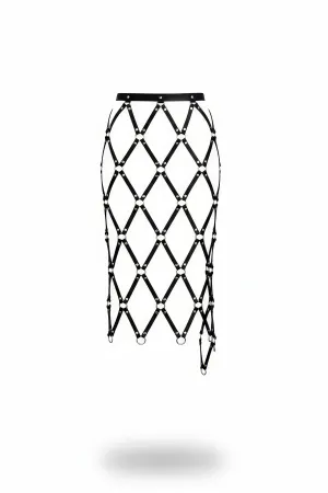 Plus Size Black Skirt with Leather Harness Cage Detail - APFT983