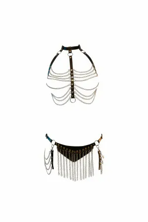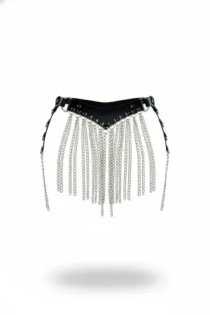 Black Skirt Chain Detailed Skirt Faux Leather Skirt Waist Accessory - APFT328