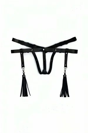 Leather Underwear Tasseled Thong Harness - APFT439