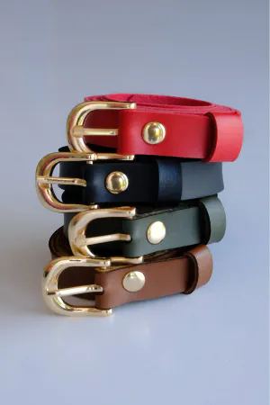 4-Piece Belt Set, Black Belt - Red Belt - Khaki Belt - Tan Belt (Gold Accessory)