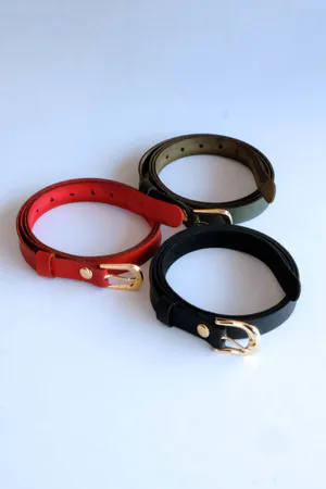 3-Piece Belt Set, Black - Red and Khaki Belt (Gold Accessory)