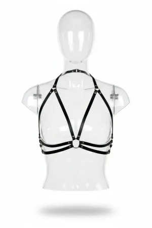 Black Leather Harness with Neck Detail - APFT409