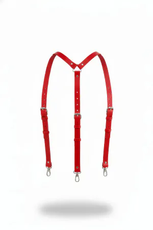 Red Women's Belt Leather Shoulder Detailed Body Accessory - APFT213