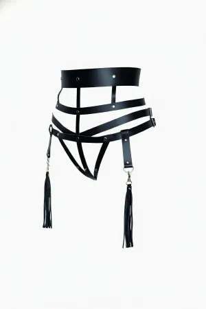Black Women's Belt Leather Body Harness with Multiple Buckles - APFT609