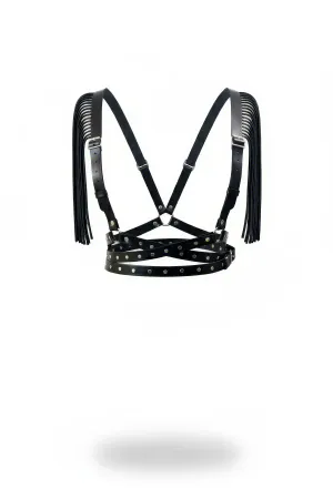 Black Women's Belt Leather Body Accessory with Stud Detail - APFT1077
