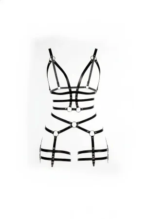 Black Body Harness Faux Leather with Metal Ring Detail - APFT820