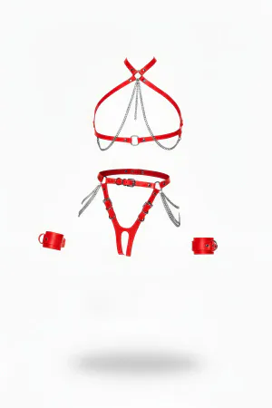 Red Harness Suit Chain Detailed 4 Piece Body Set - APFT1224