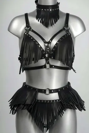 Stylish Leather Harness Set with Tassel Detail - APFT627