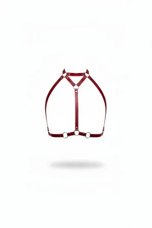 Burgundy Chest Harness Leather High Collar Body Accessory - APFT245