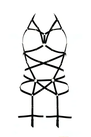 Black Garter Harness Leather Body Cage Full Length - APFT502