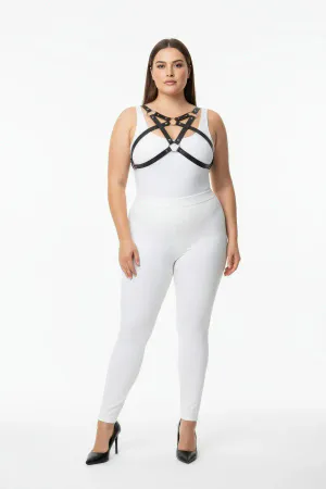 Plus Size Black Women's Harness Suit with Garter Leather Body Accessory - APFT697