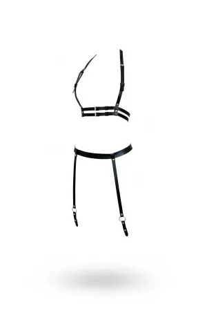 Black Harness Suit with Faux Leather Adjustable Garter - APFT232