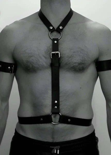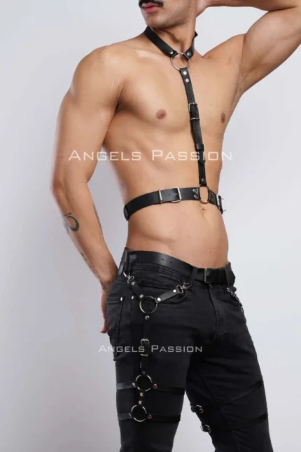 47,9 $Men’s Garter and Chest Harness, Leather Men’s Leg Harness, Leather Chest Harness, Partywear, Clubwear – SHM202