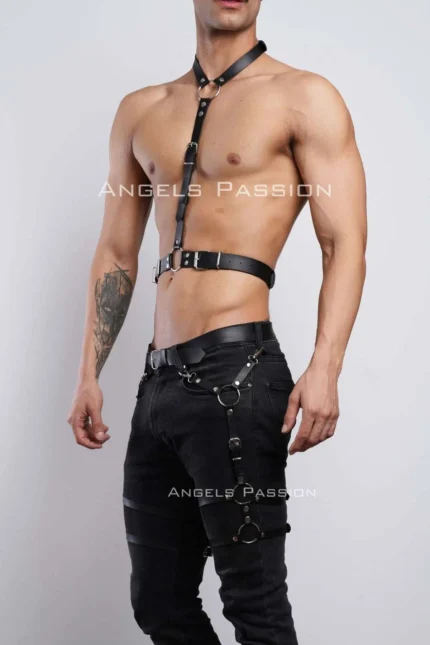 47,9 $Men’s Garter and Chest Harness, Leather Men’s Leg Harness, Leather Chest Harness, Partywear, Clubwear – SHM202