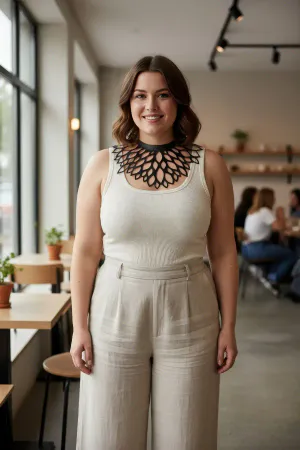 Large Size Black Women's Choker Laser Cut Aesthetic Combination Complement - APFT1407
