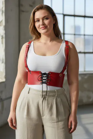 Plus Size Red Women's Belt Laced Leather Corset Harness - APFT1428