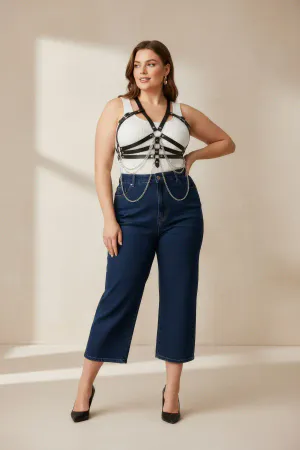 Plus Size Black Women's Belt Staple Detailed Leather Harness Body Accessory - APFT1299