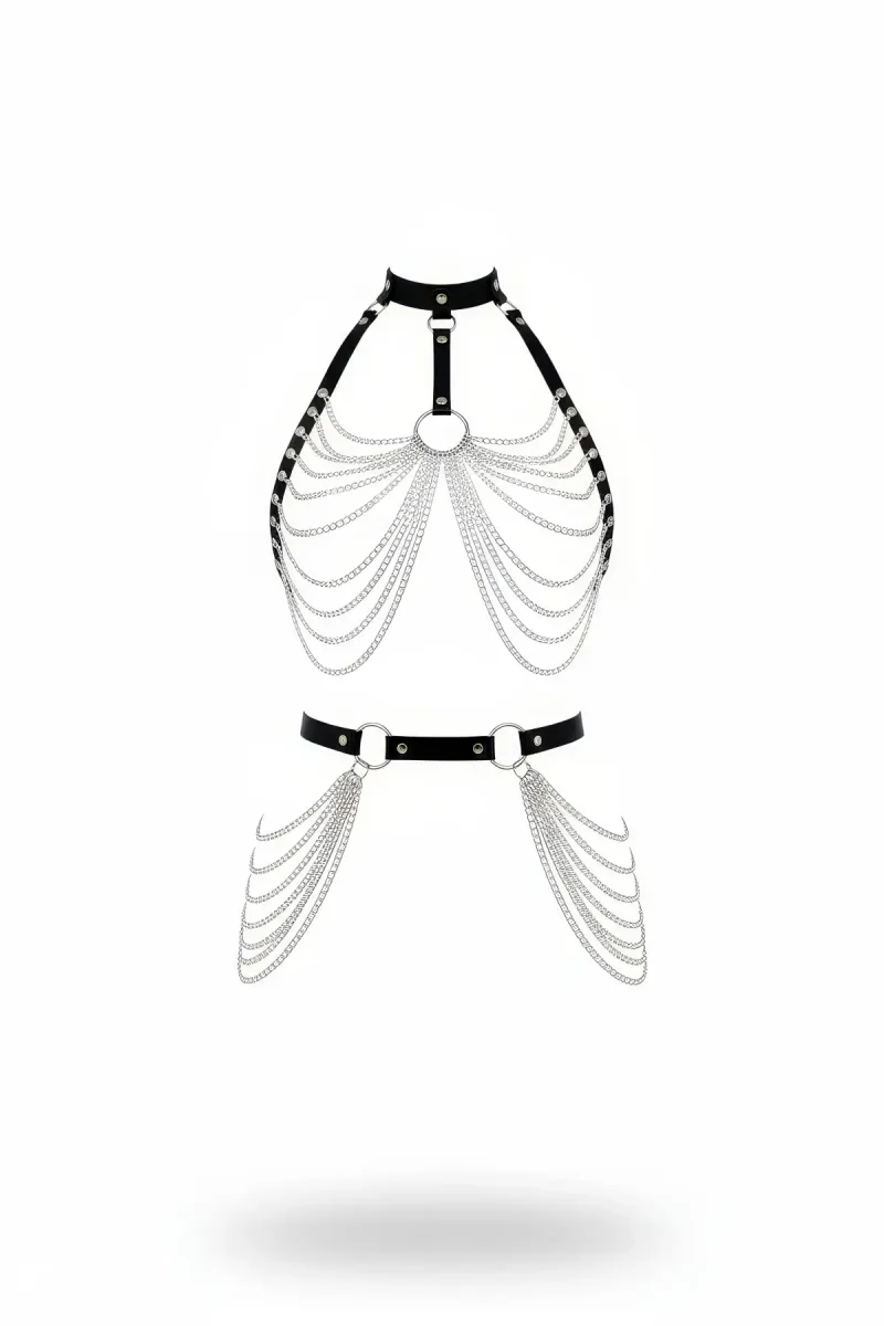 Black Women's Belt Chain Detailed Faux Leather Body Accessory - APFT701