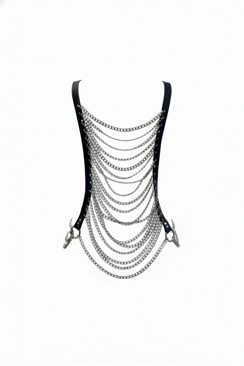 Black Women's Belt Multi-Layered Chain Detailed Body Accessory - APFT399