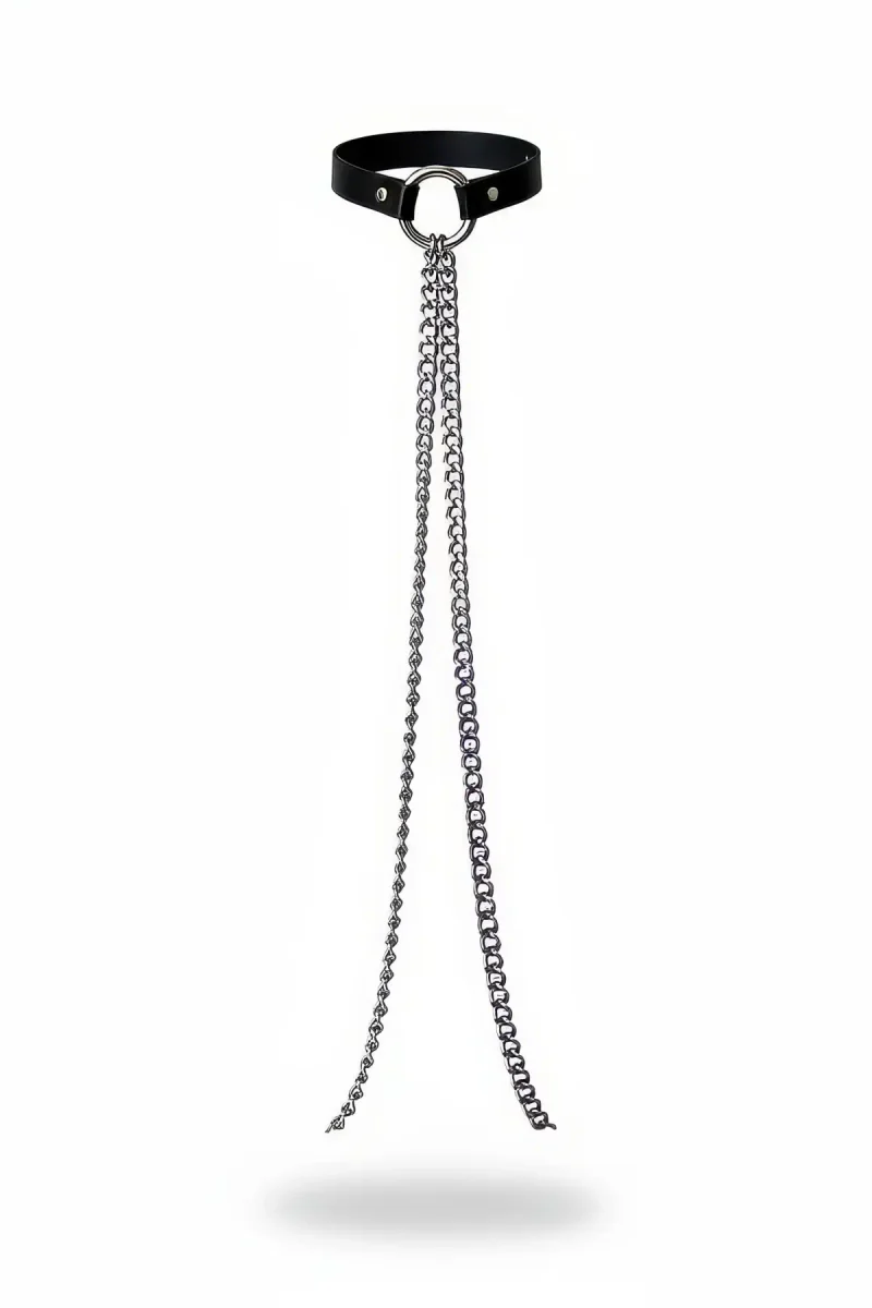 Black Women's Belt with Metal Ring and Long Chain Detail - APFT429