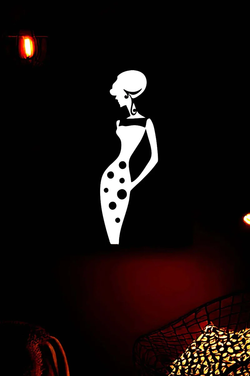 Home/Home Decor/Canvas Print/Retro Style Reflective Polka Dot Woman Silhouette Leather Wall Painting