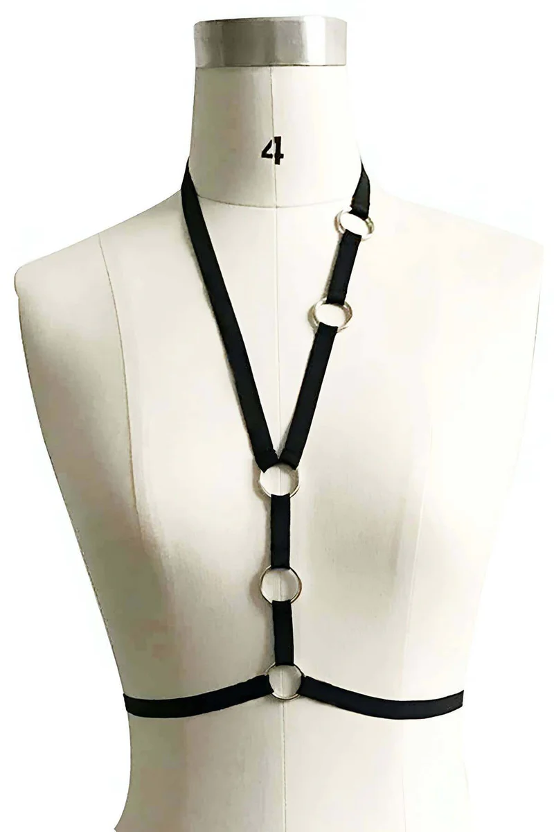 Black Chest Harness Faux Leather Ring Body Accessory - APFT238
