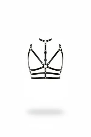 Black Chest Harness Leather Neck Collar with Adjustable Metal Detail - APFT235