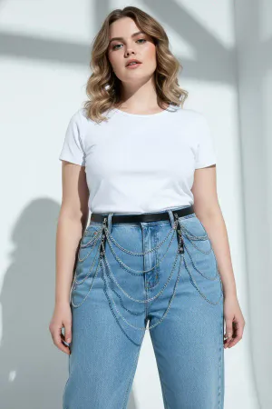 Large Size Black Women's Belt with Multiple Chain Detail, Aesthetic Design - APFT921