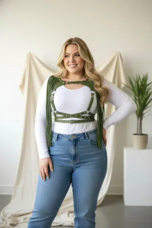 Plus Size Tan Women's Leather Belt, Corset and Tassel Detailed Harness - APFT985